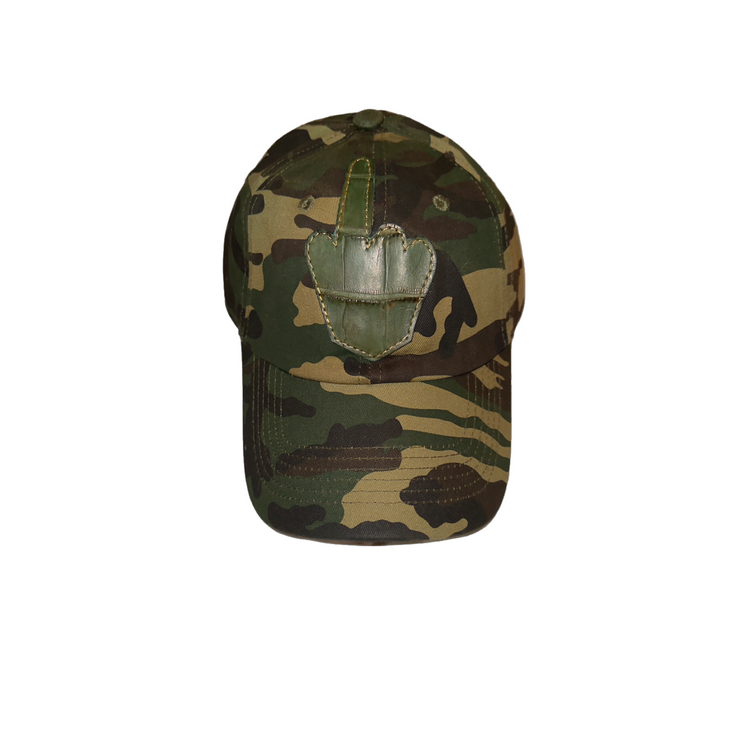 Camouflage alligatorMiddle finger 100% cotton baseball cap made in NYC ships world wide