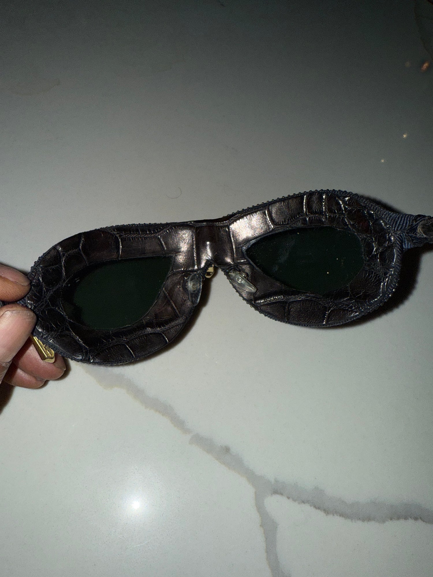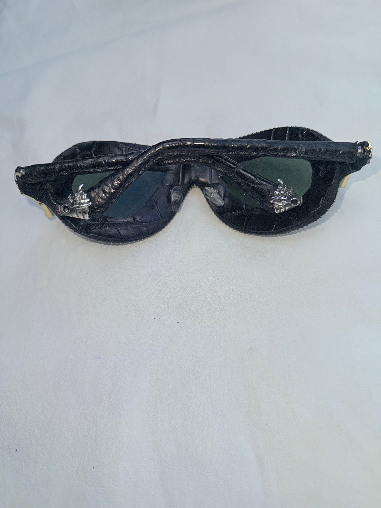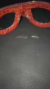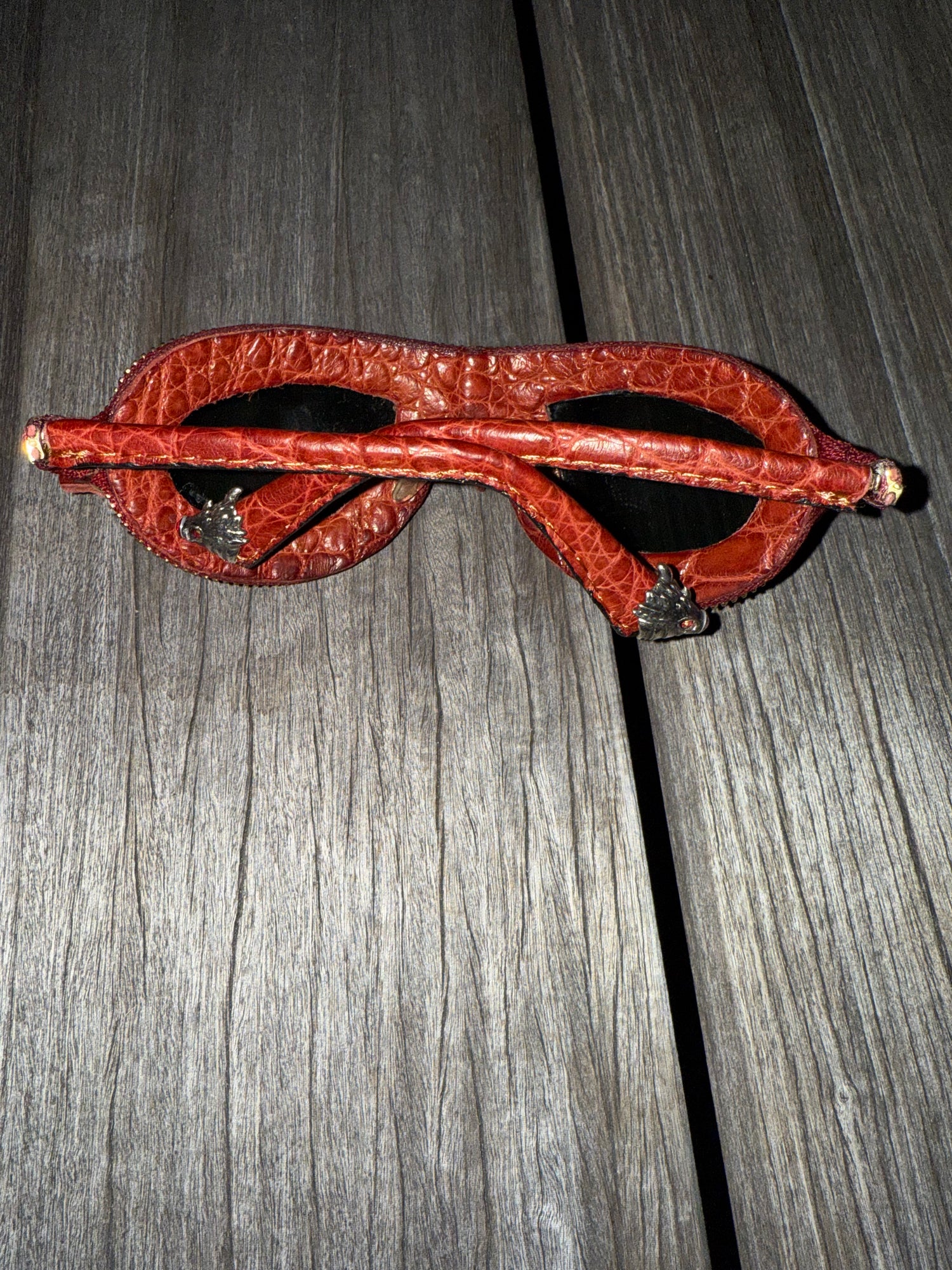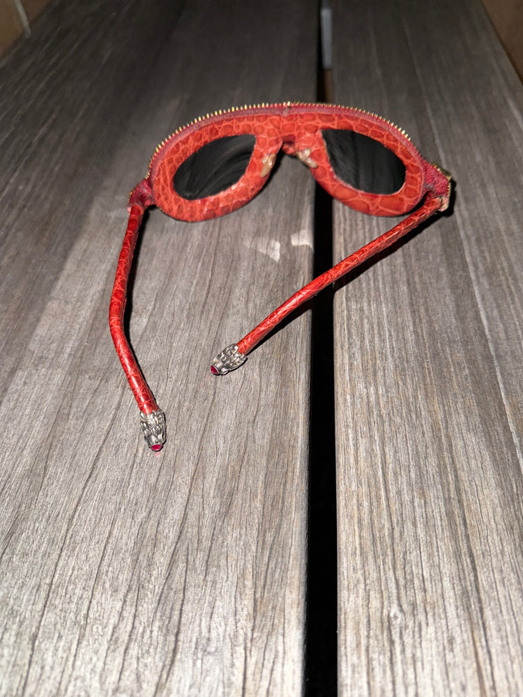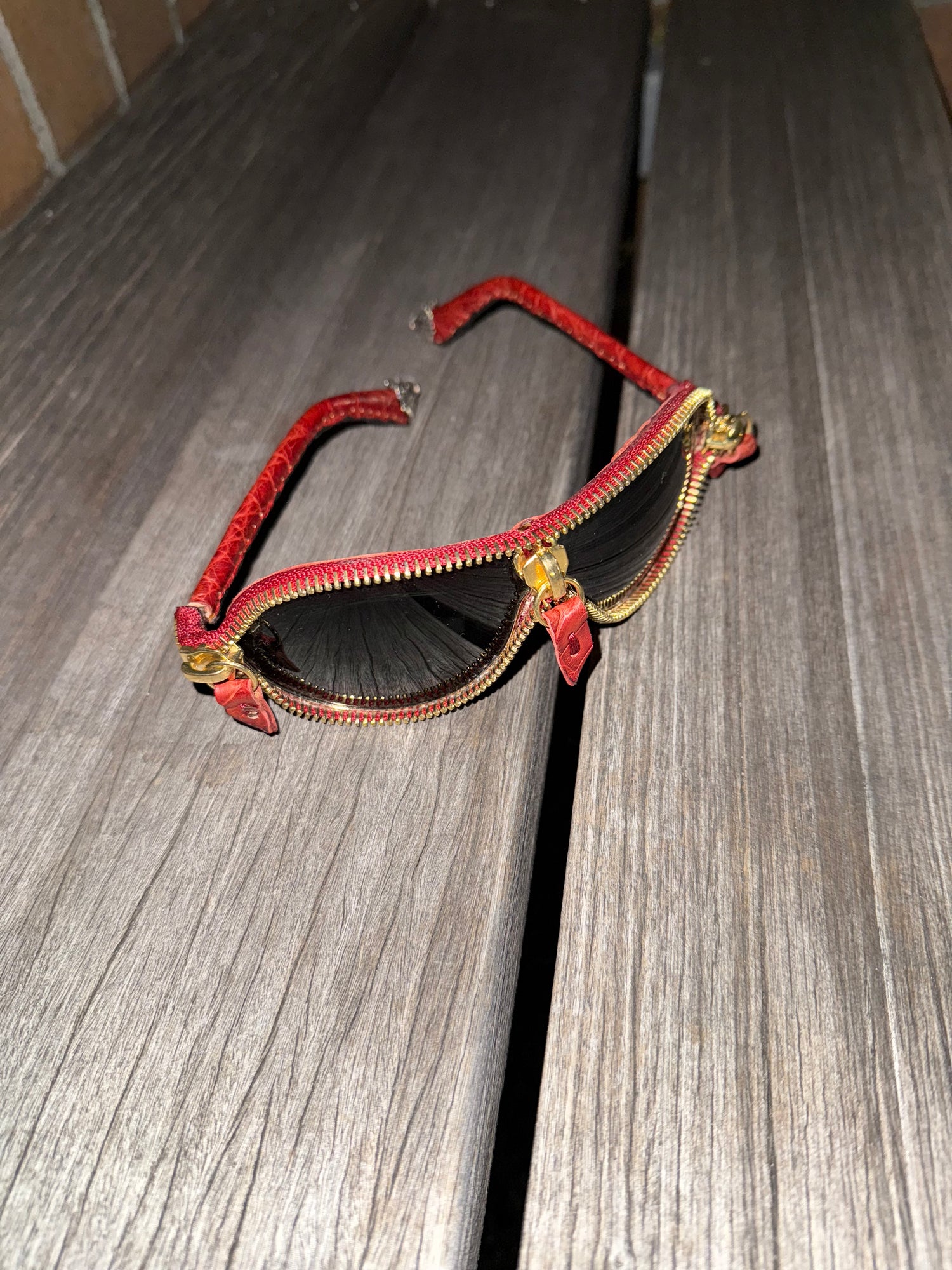 Genuine Alligator inside and out zipper shades with red ruby tips available in Ray ban or alternative made in NYC ships worldwide.