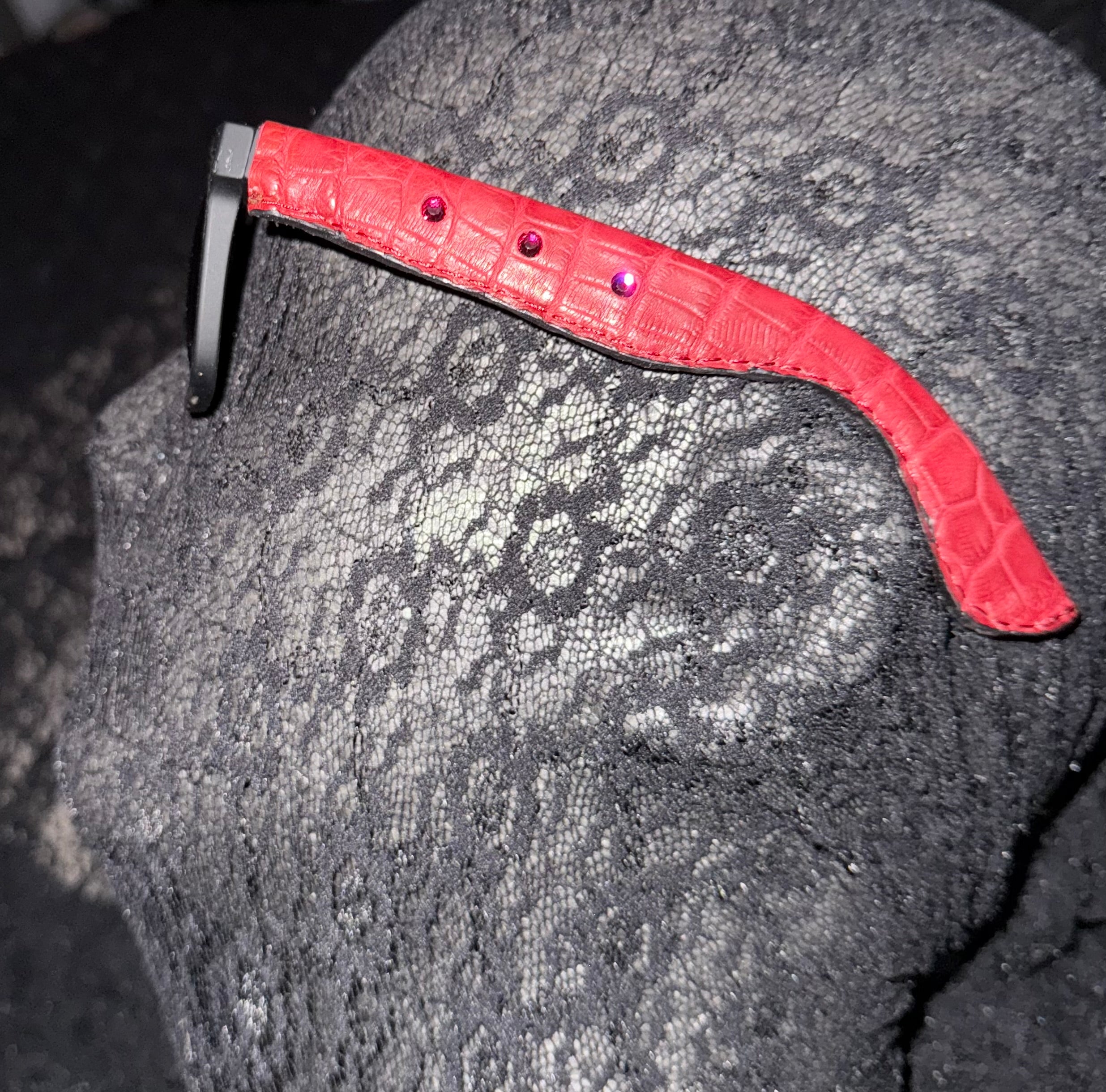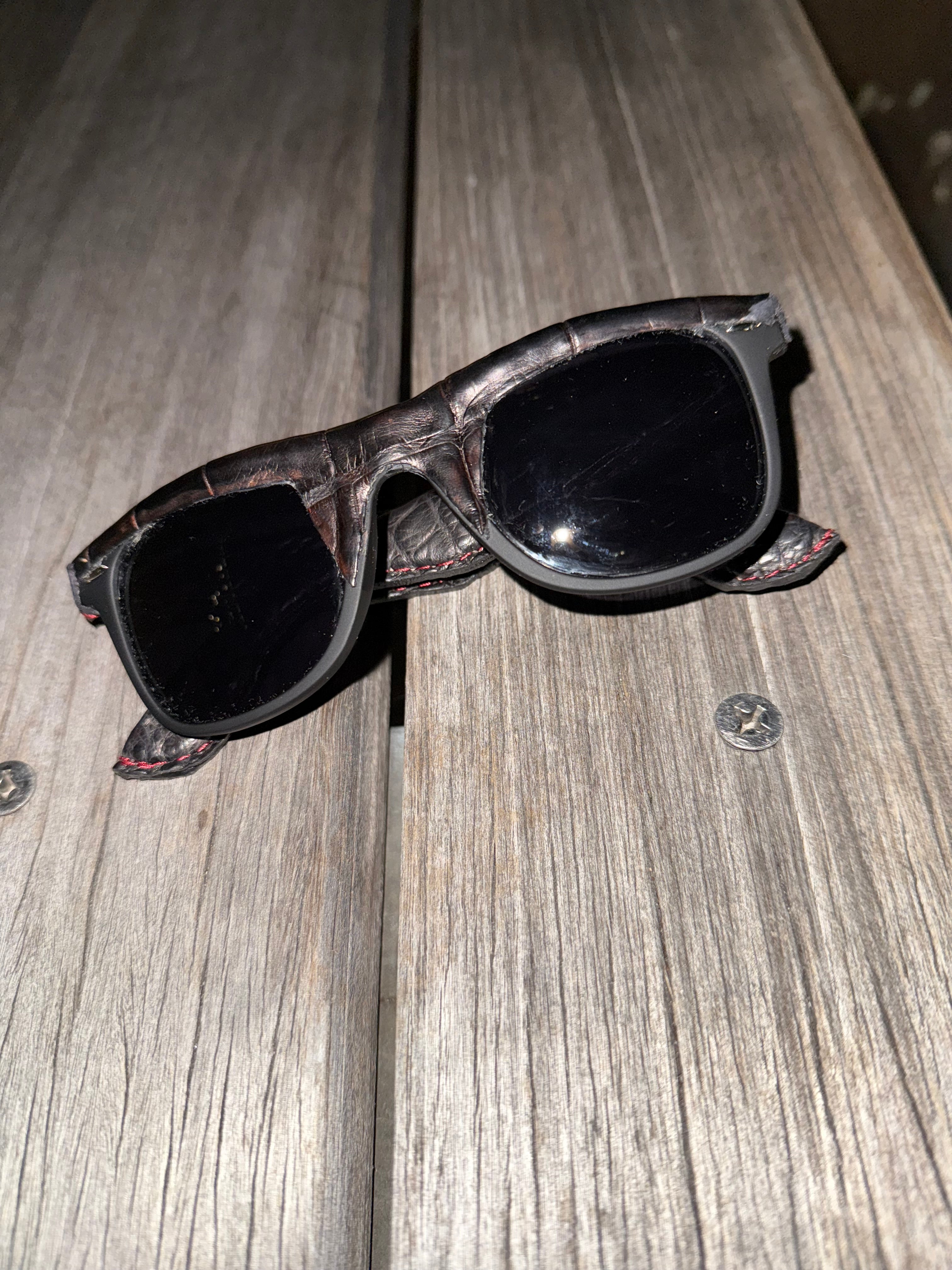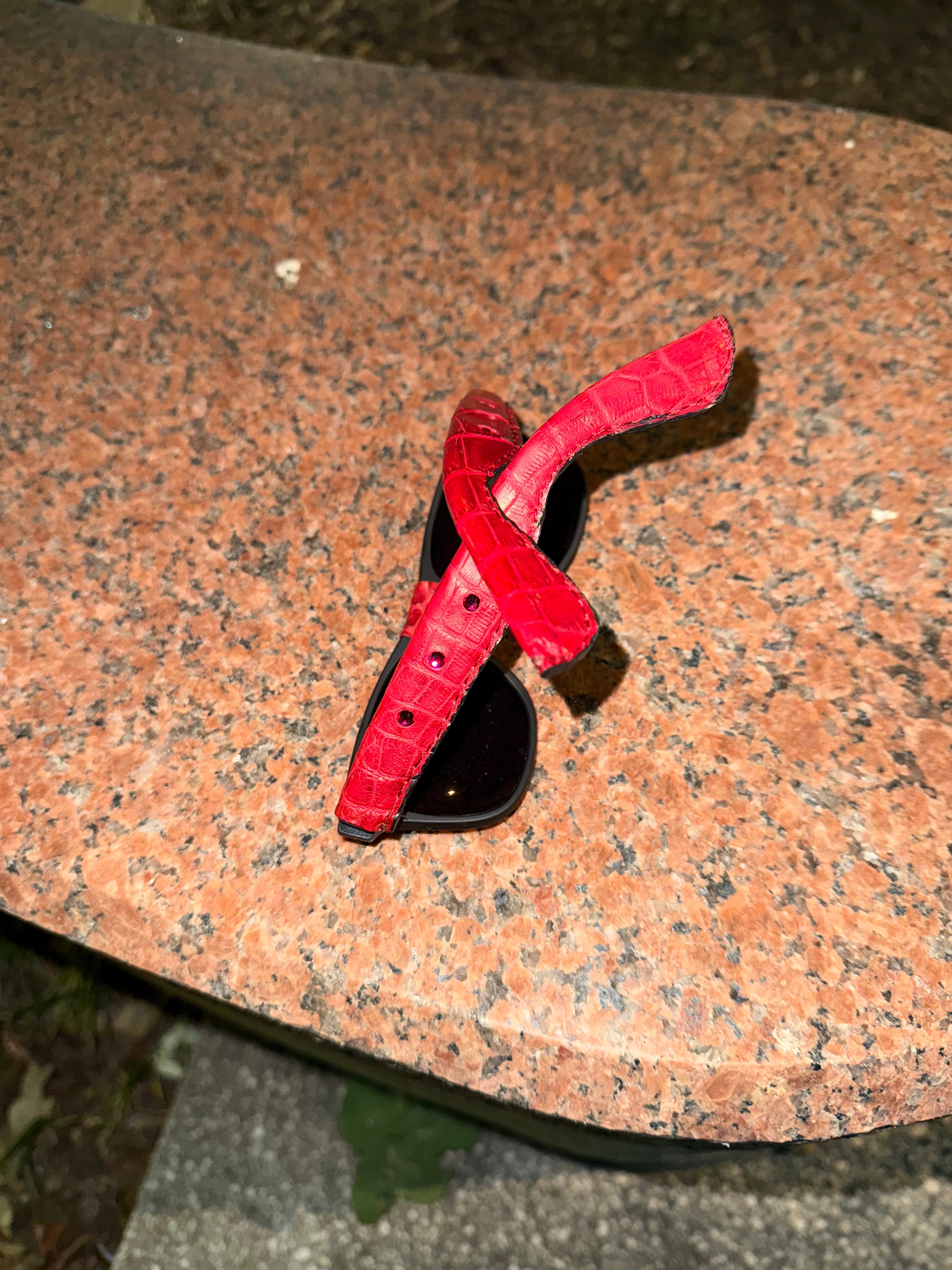Genuine Alligator wrapped red ruby embedded Ray Ban Wayfarer sunglasses available in black or red made in NYC ships worldwide