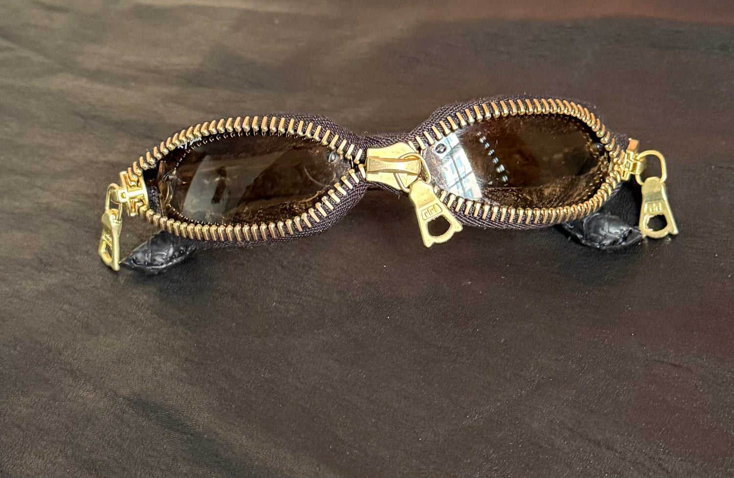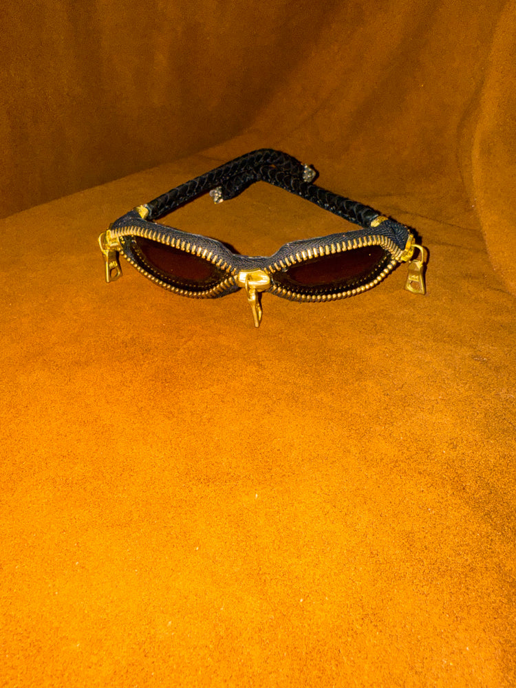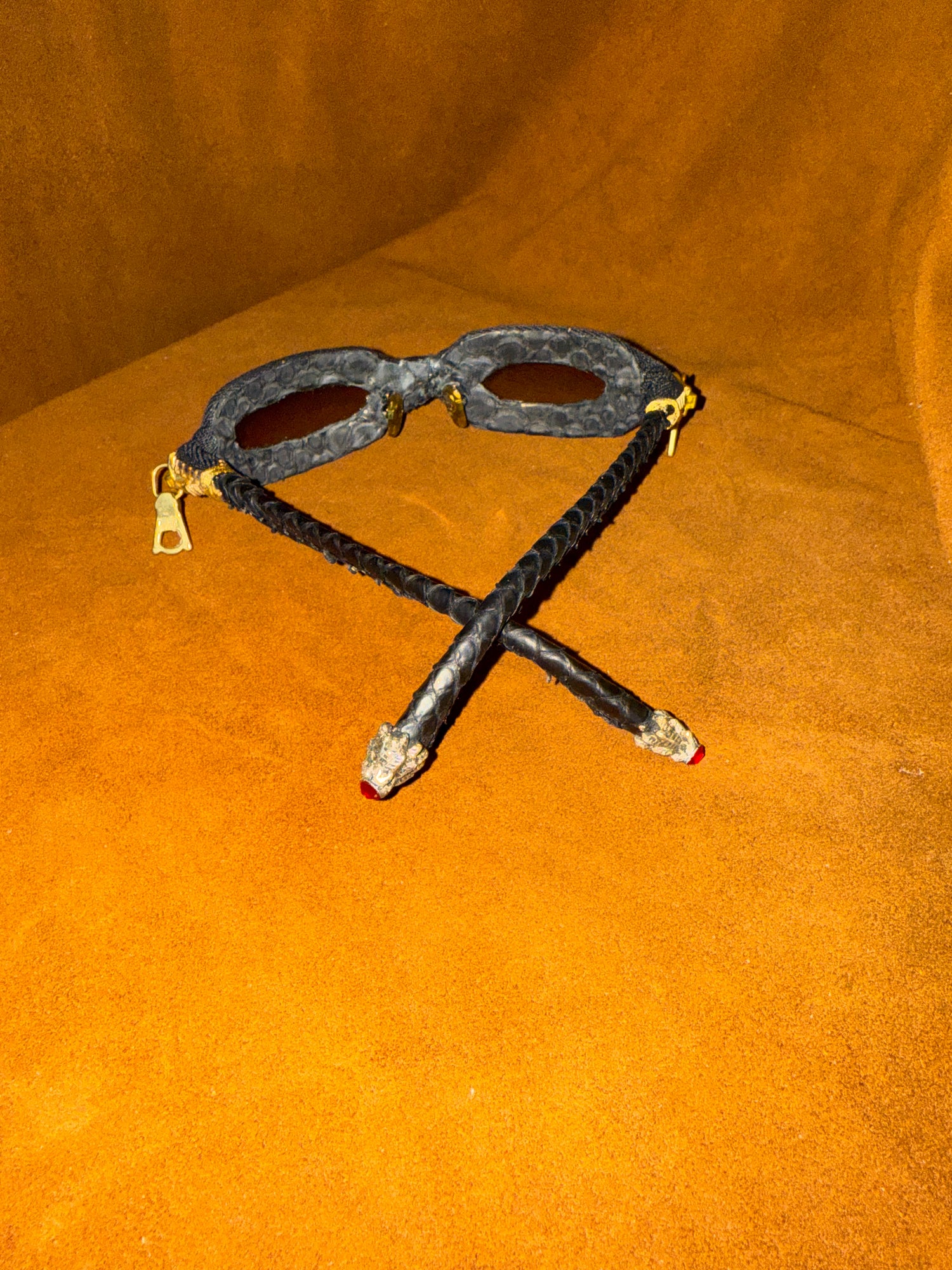 Black python custom Ray Bans with zipper detailing and red ruby tips made in NYC ships worldwide 1-2 weeks delivery.