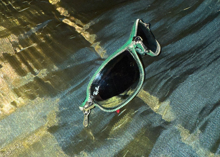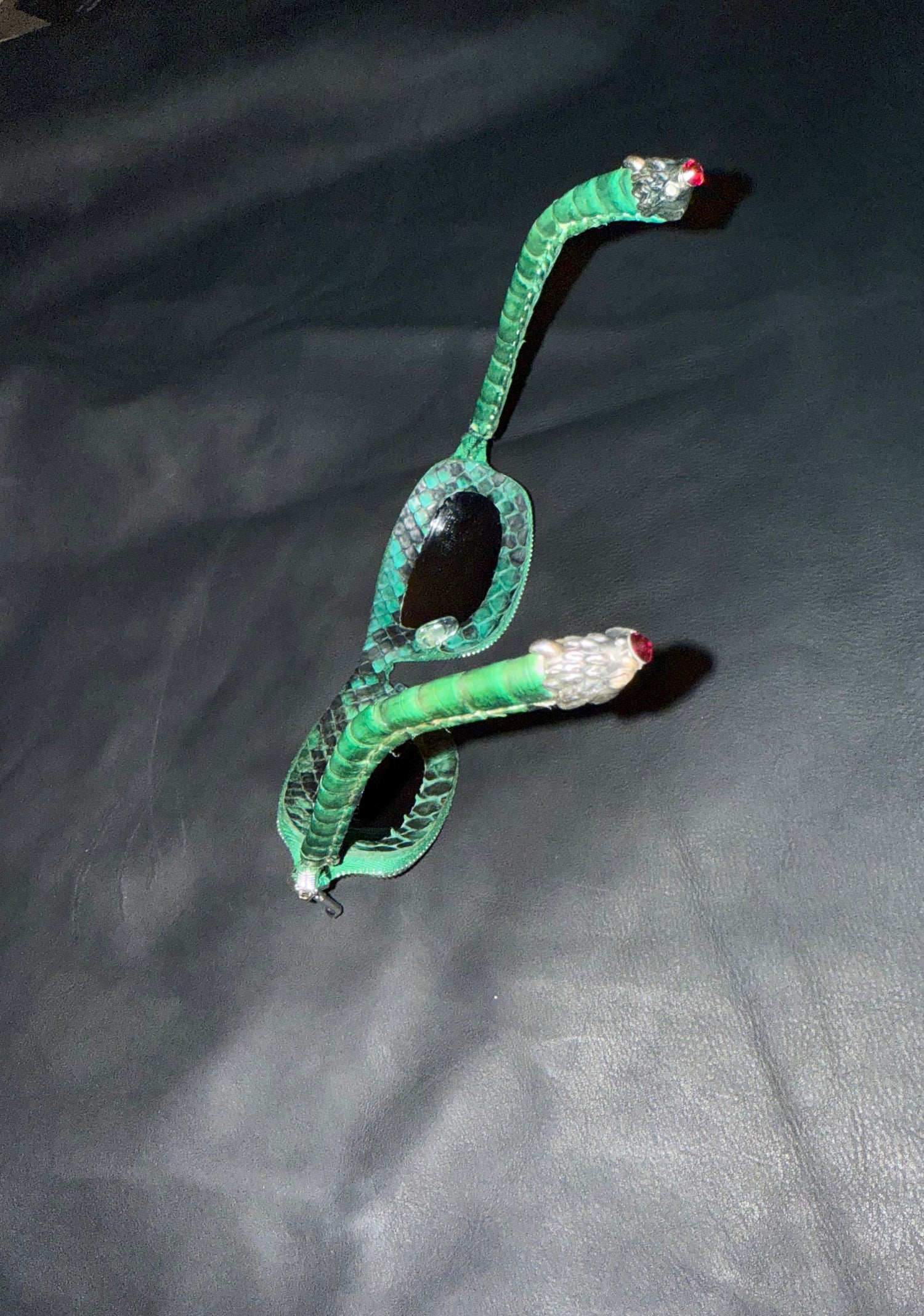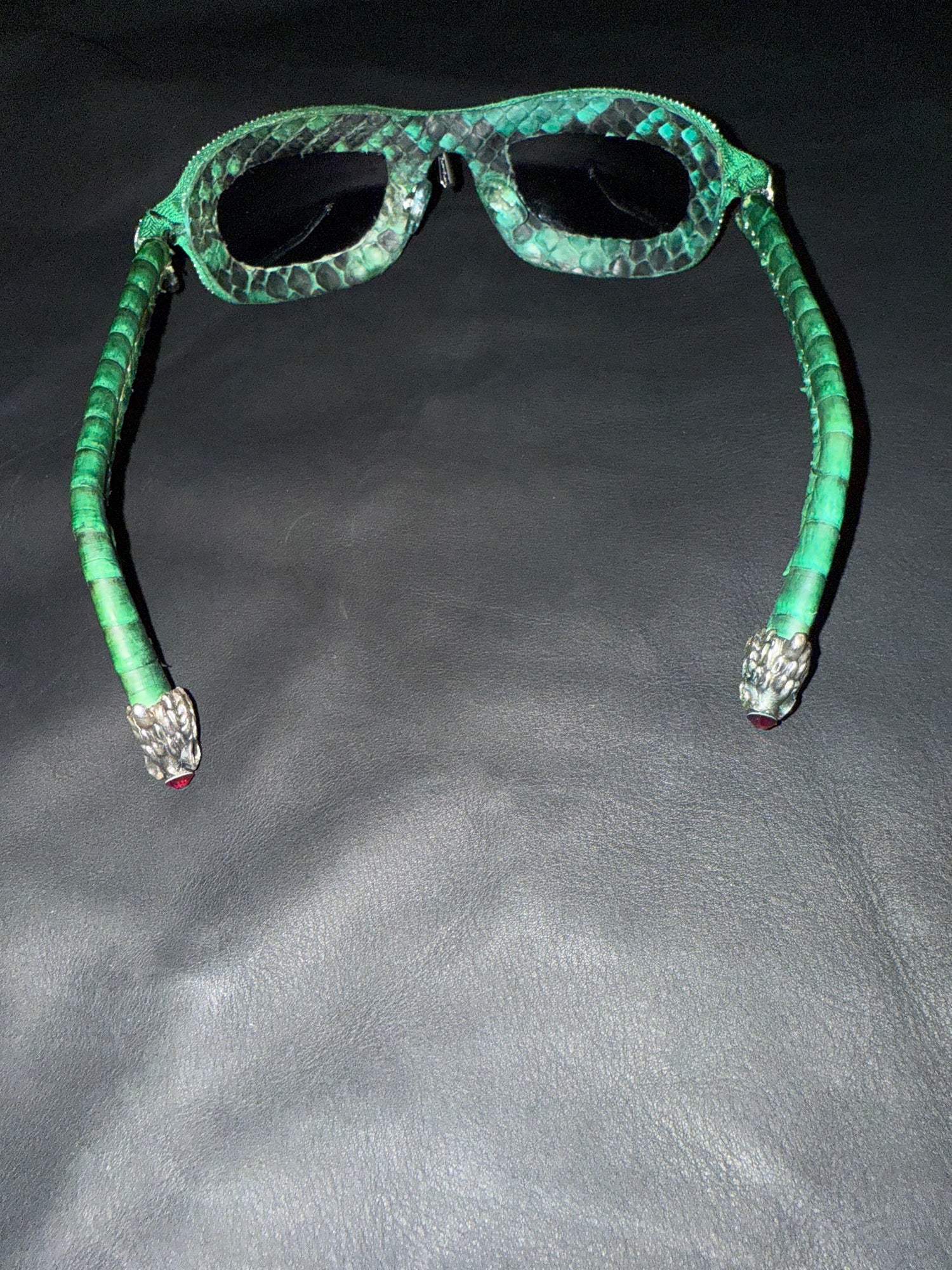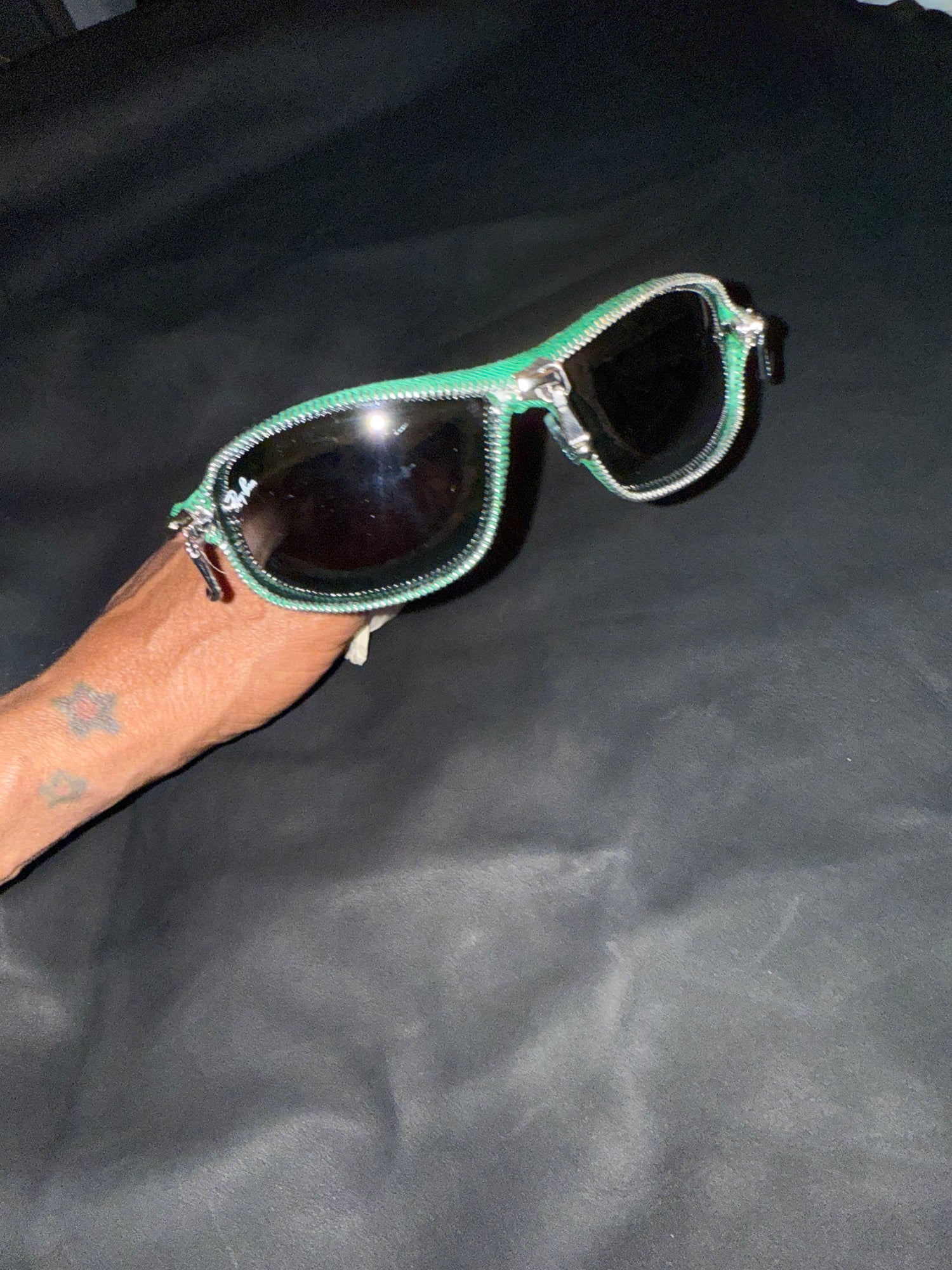 Green python custom Ray Ban with zipper details made in NYC ships world wide 1-2 weeks delivery