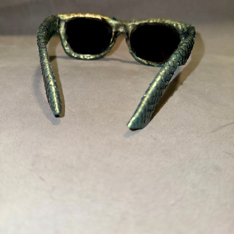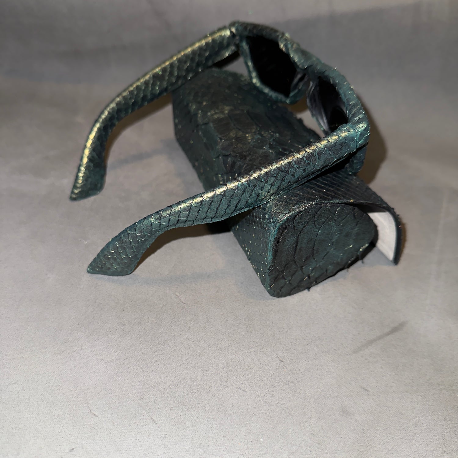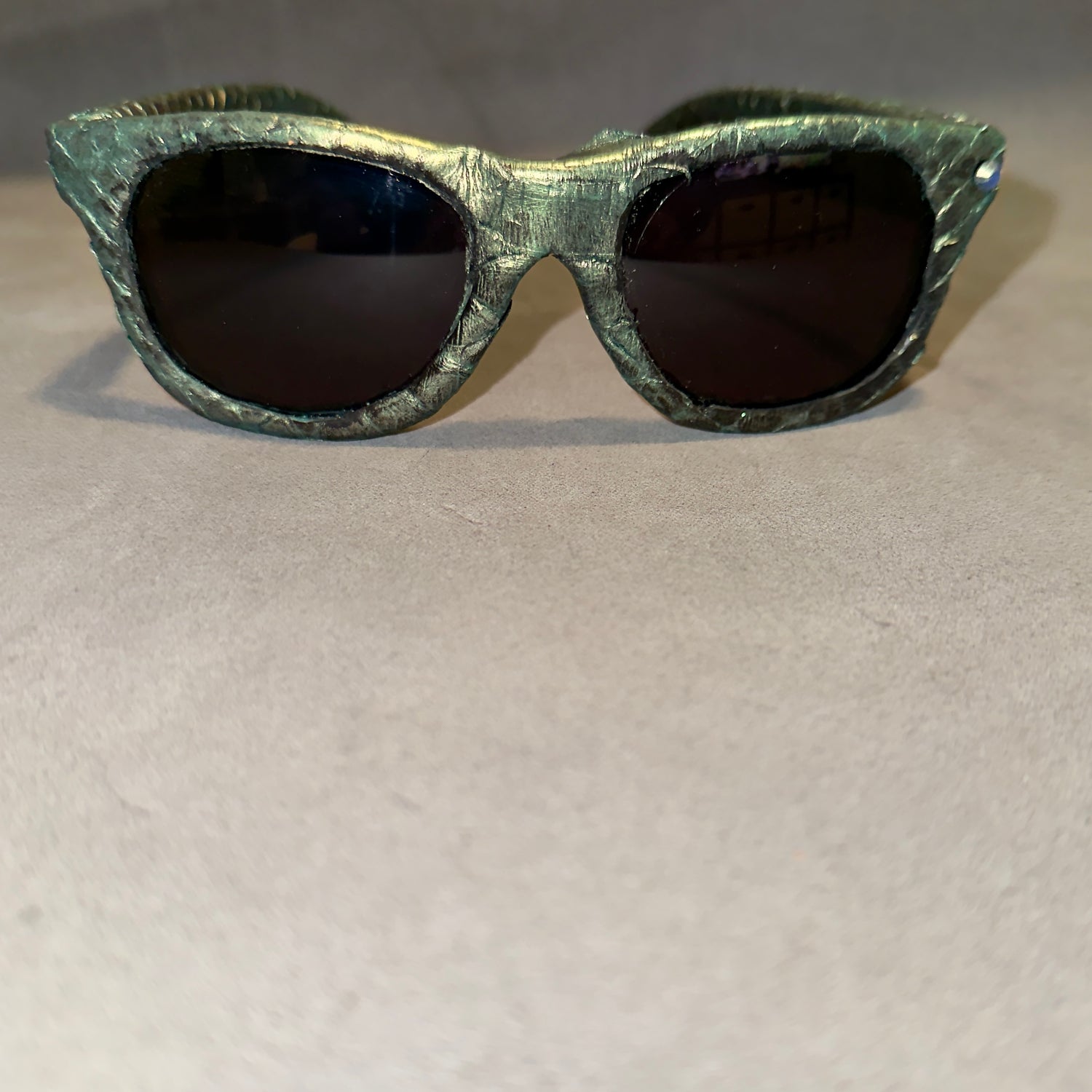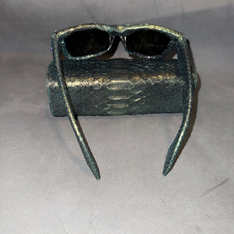 Step into the wild side with Green Gold sunglasses! Genuine python frames add a touch of luxury to the wayfarer style, while the elegant python case adds to the exotic feel. Features also include glass lens and UV protection.These sunglasses made in NY ship worldwide. Take on the world with this unmistakably stylish and bold accessory!