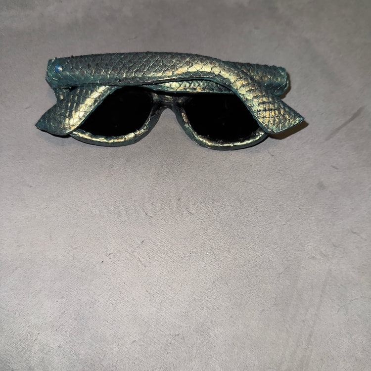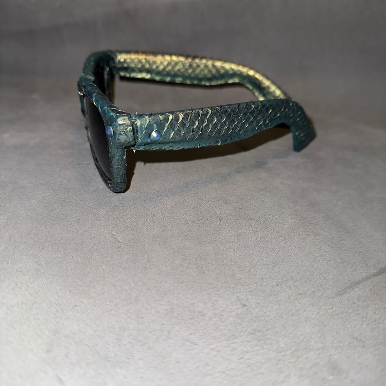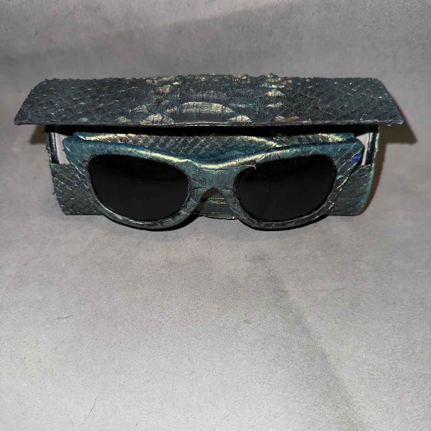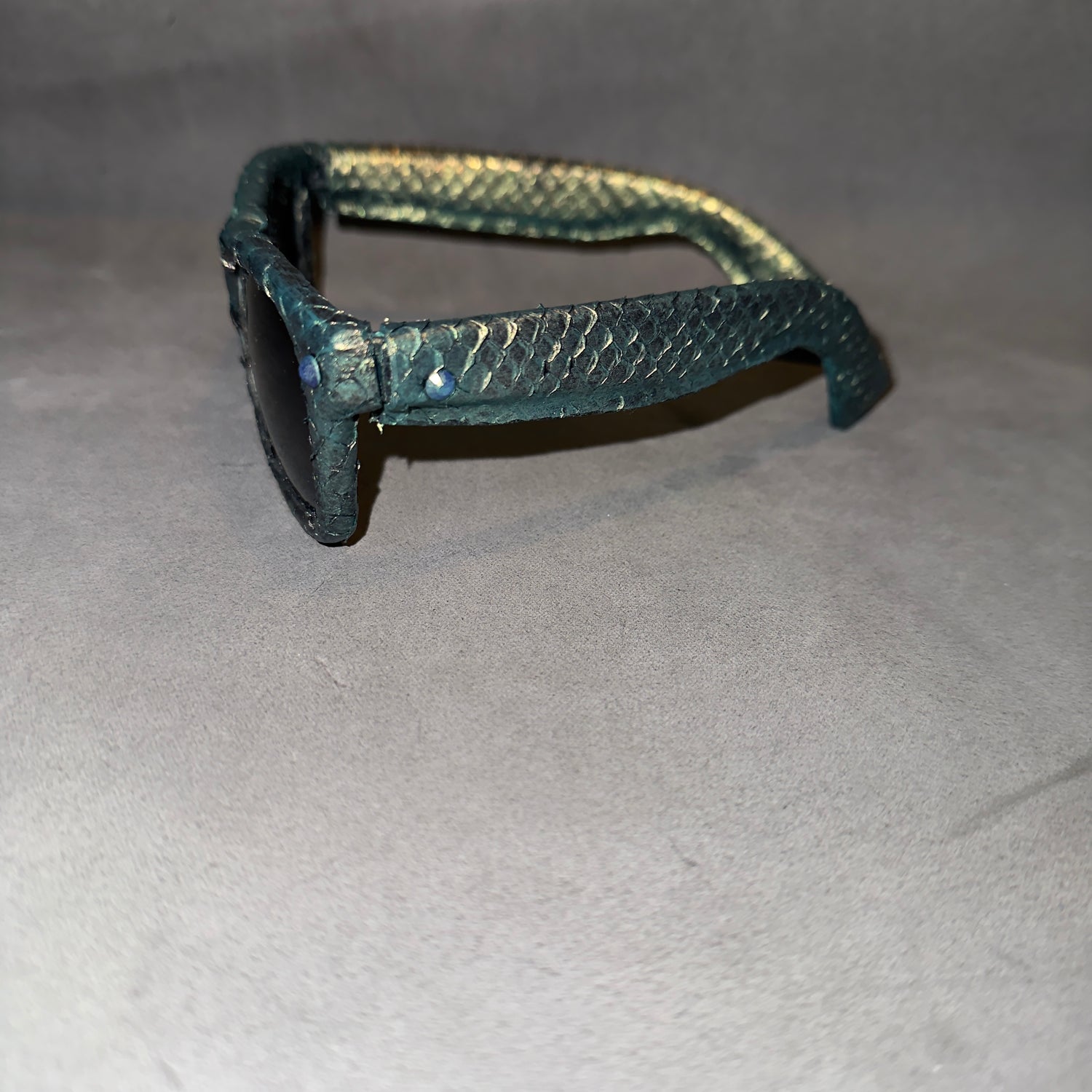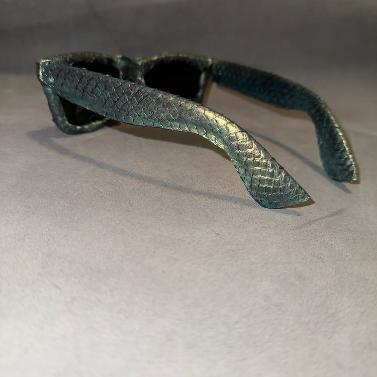 Step into the wild side with Green Gold sunglasses! Genuine python frames add a touch of luxury to the wayfarer style, while the elegant python case adds to the exotic feel. Features also include glass lens and UV protection.These sunglasses made in NY ship worldwide. Take on the world with this unmistakably stylish and bold accessory!