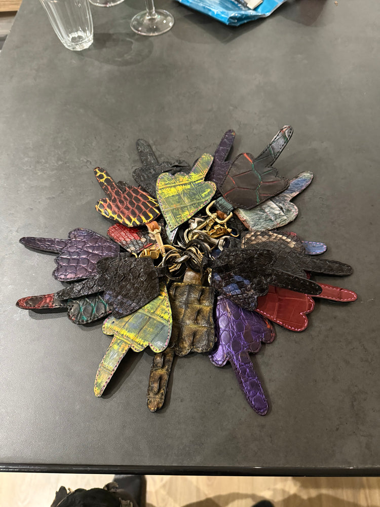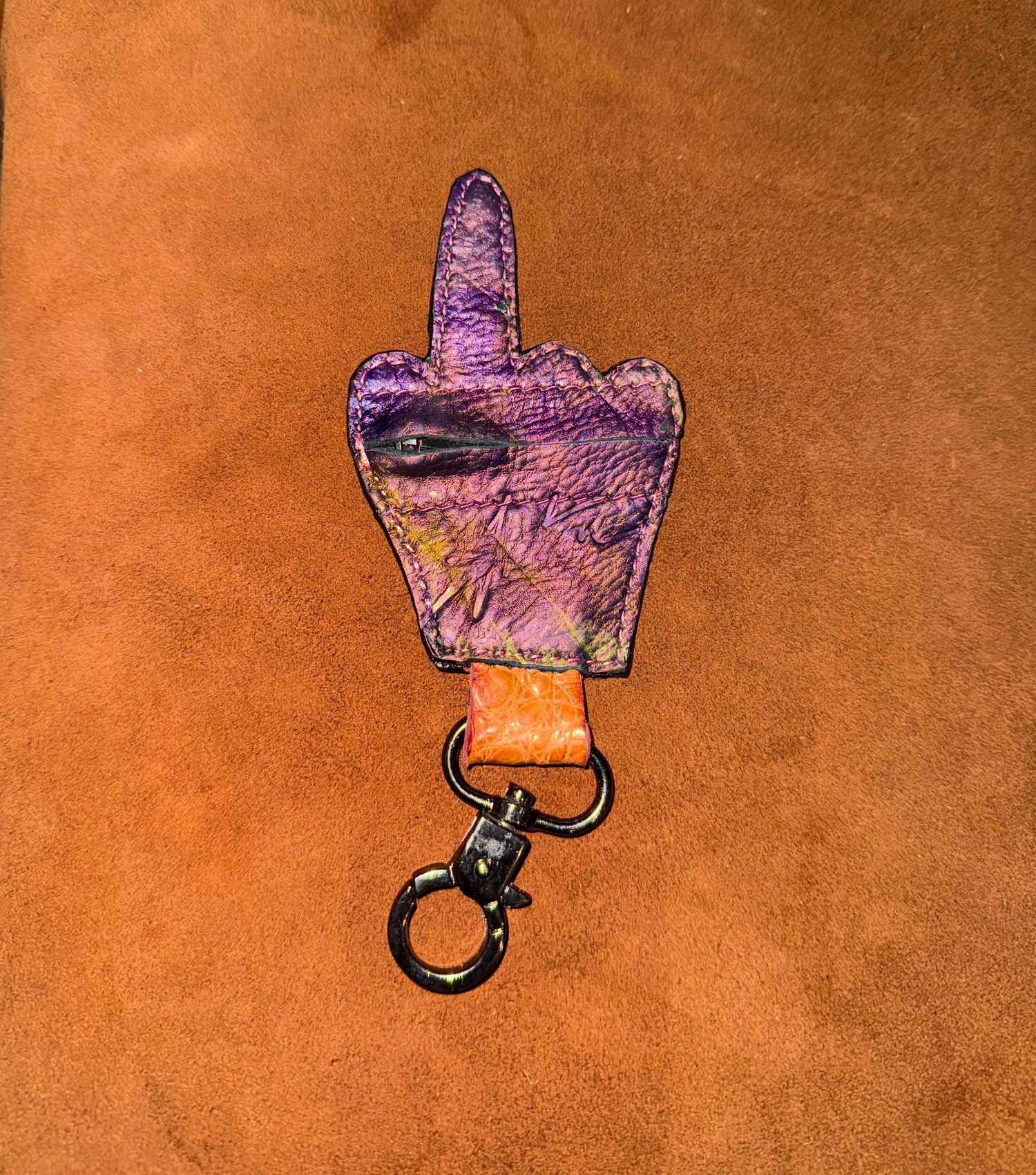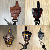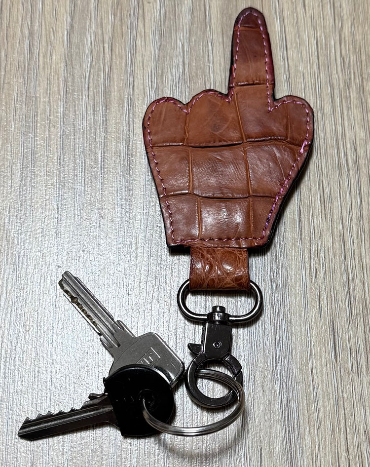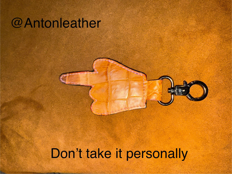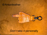 Tan alligator middle finger denim keychain/bag charm made in NYC ships world wide