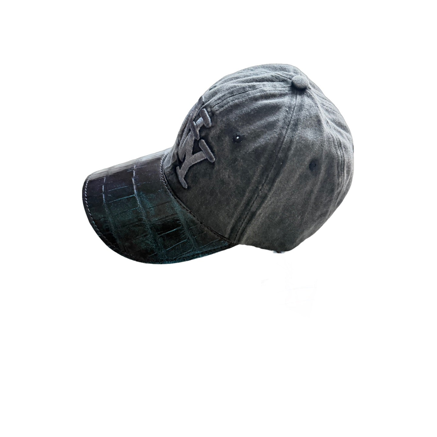 Black and blue genuine alligator and 100% cotton baseball cap made in NYC ships worldwide