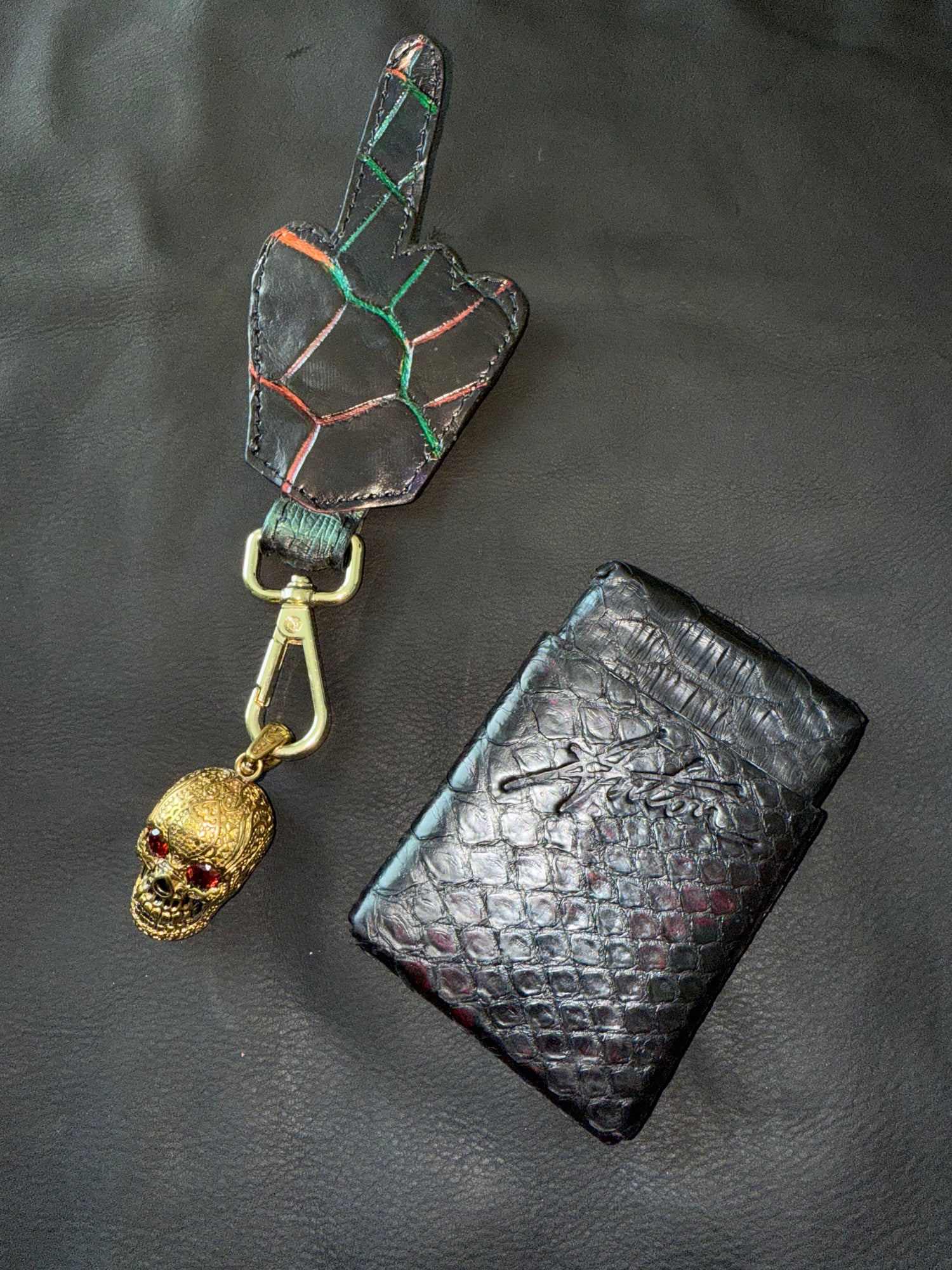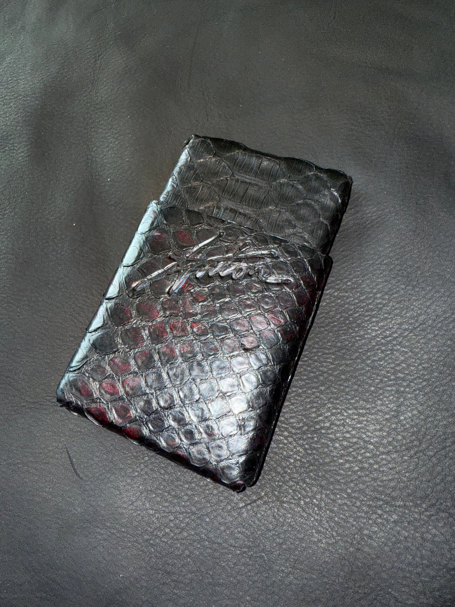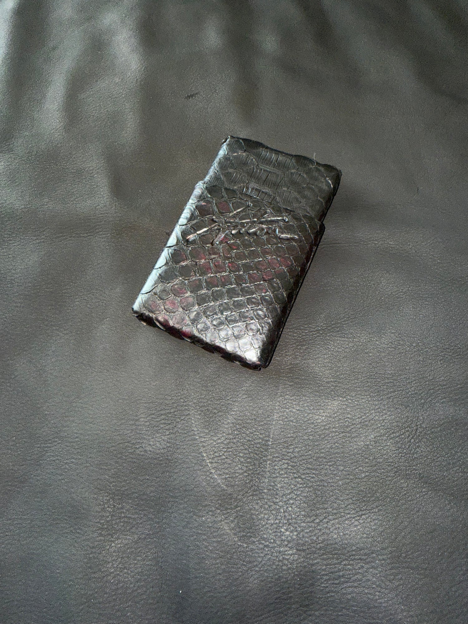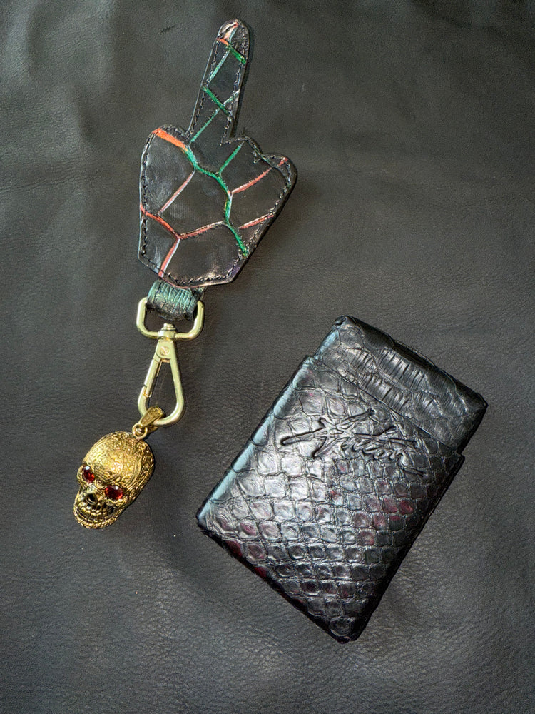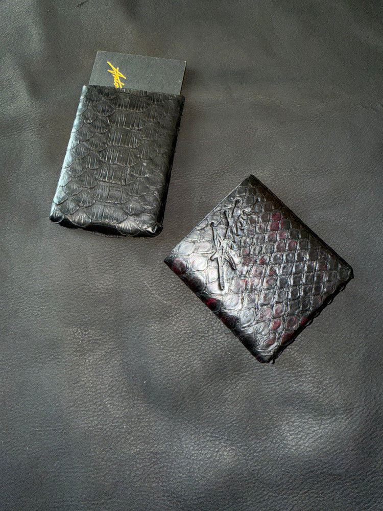 Black genuine python wallet the smallest wallet on the planet inspired by Tiffany made in NYC ships worldwide.