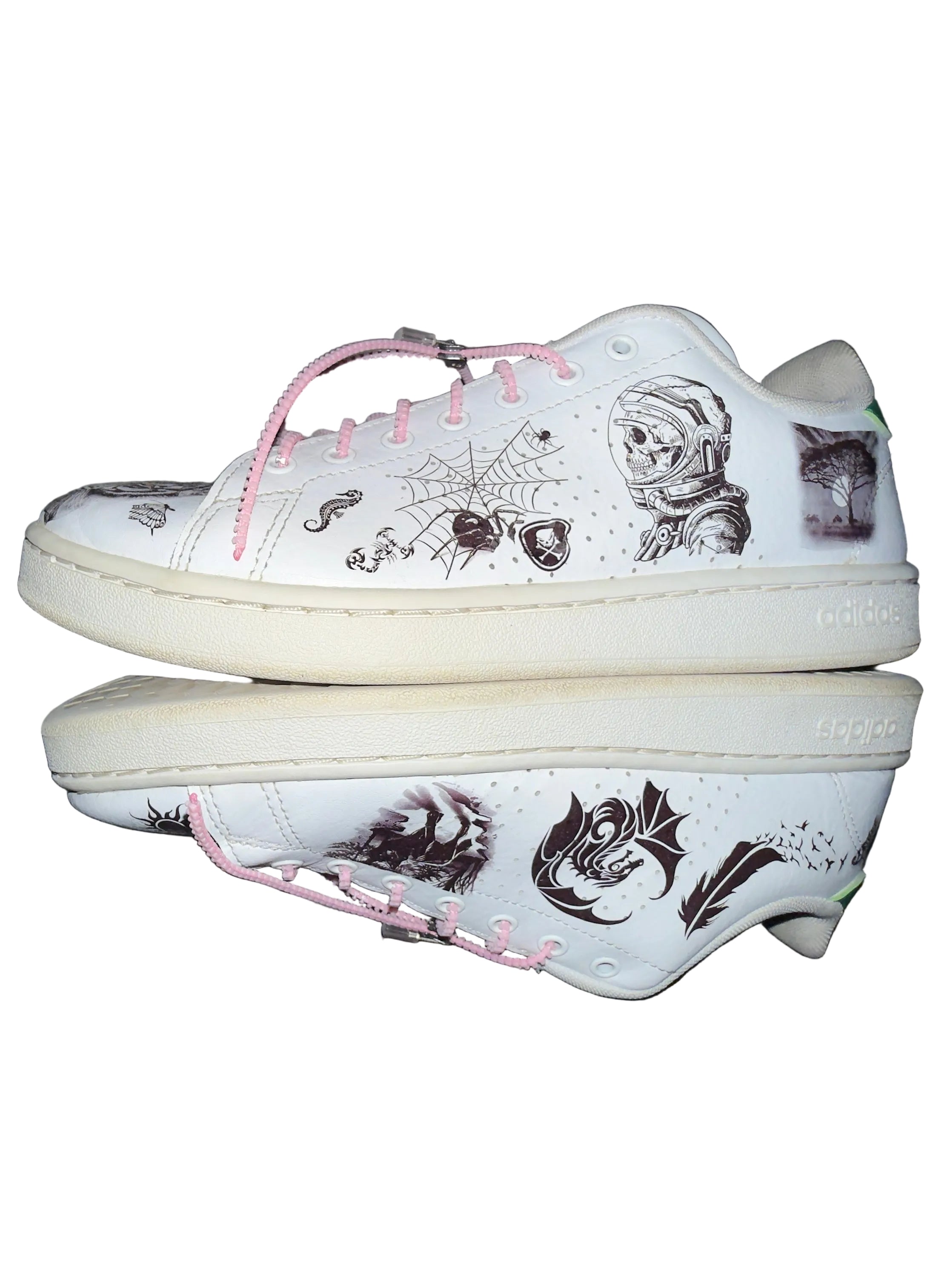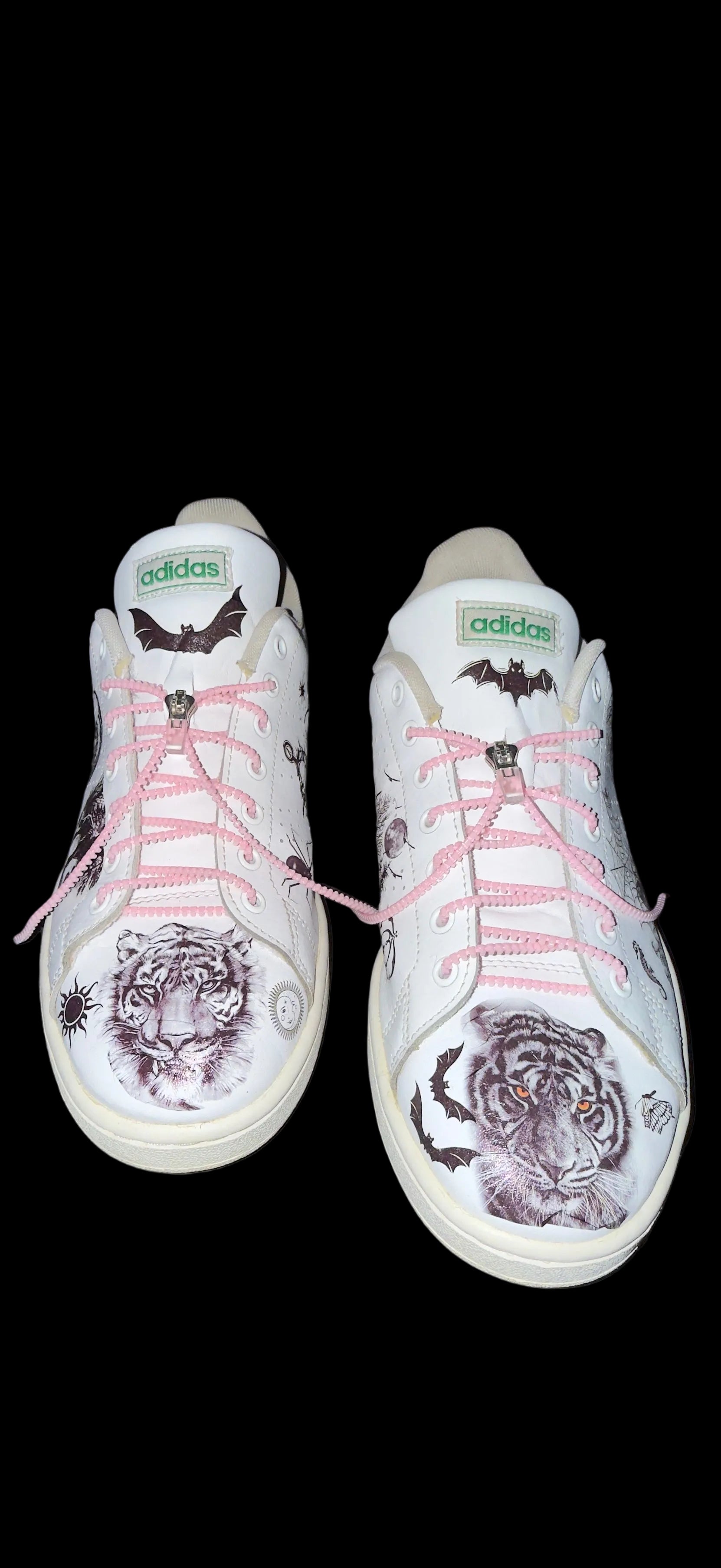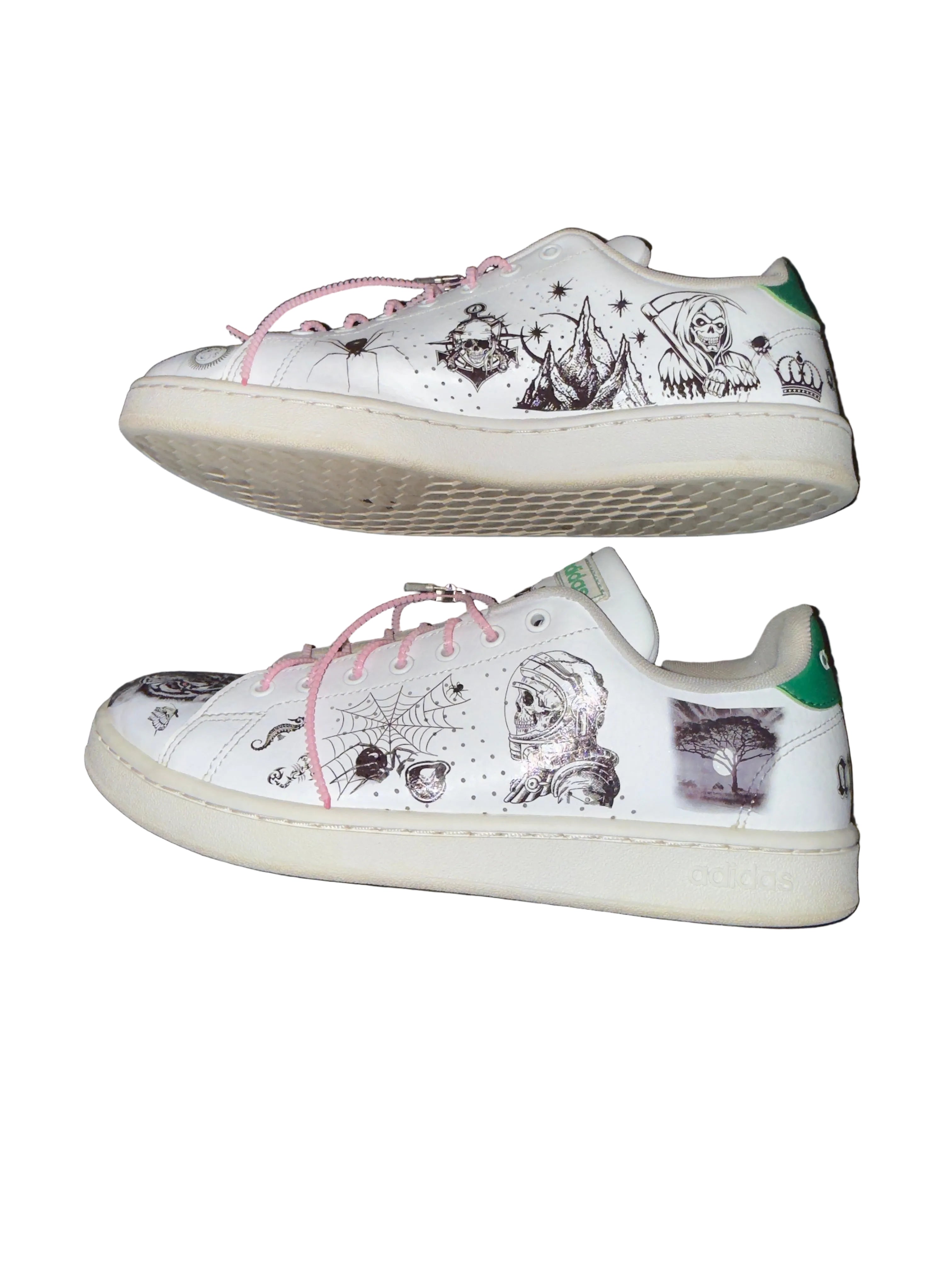 White Custom printed Adidas sneaker with Zipuplaces 1of1 mens size 9.5 made in USA ships worldwide