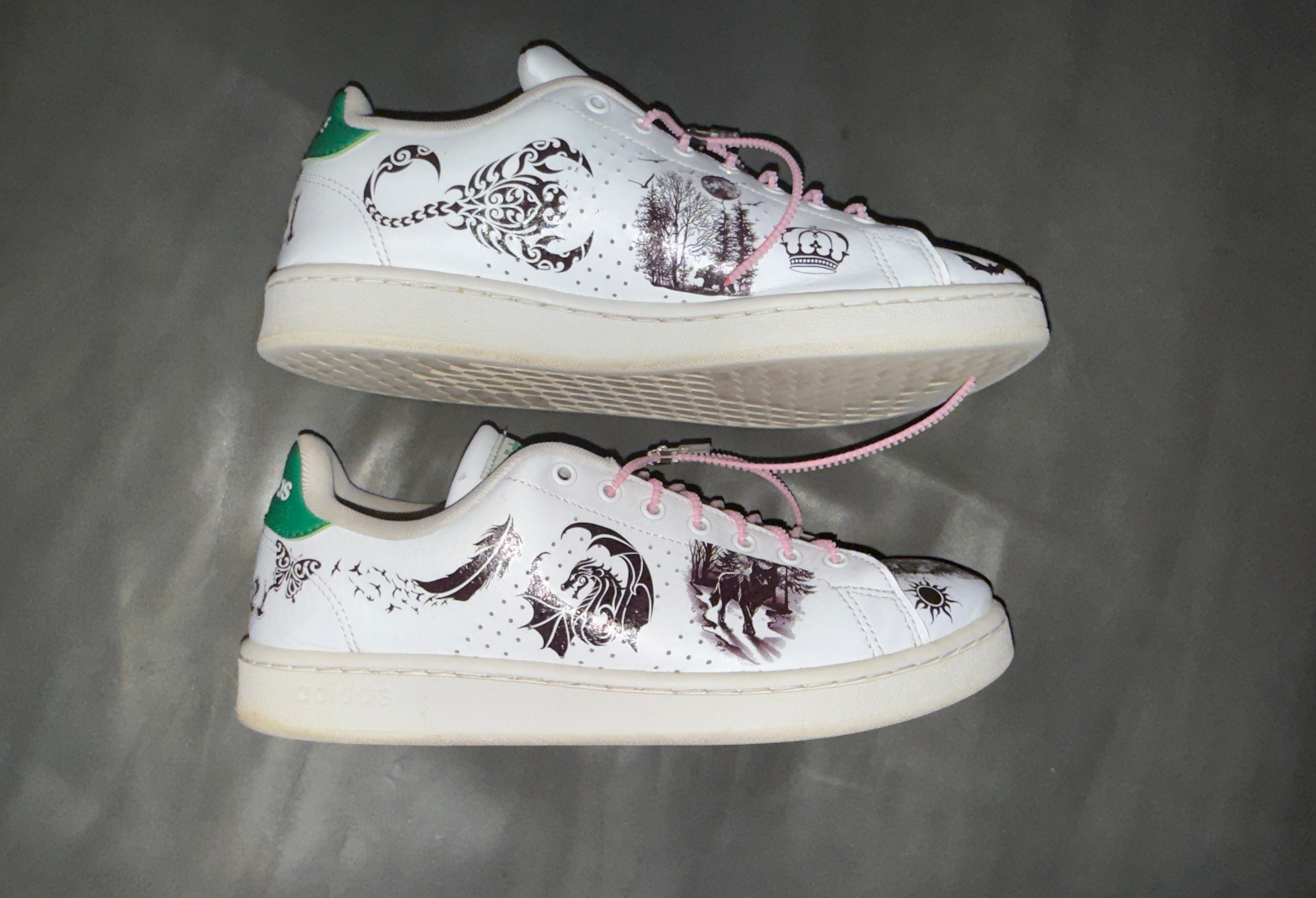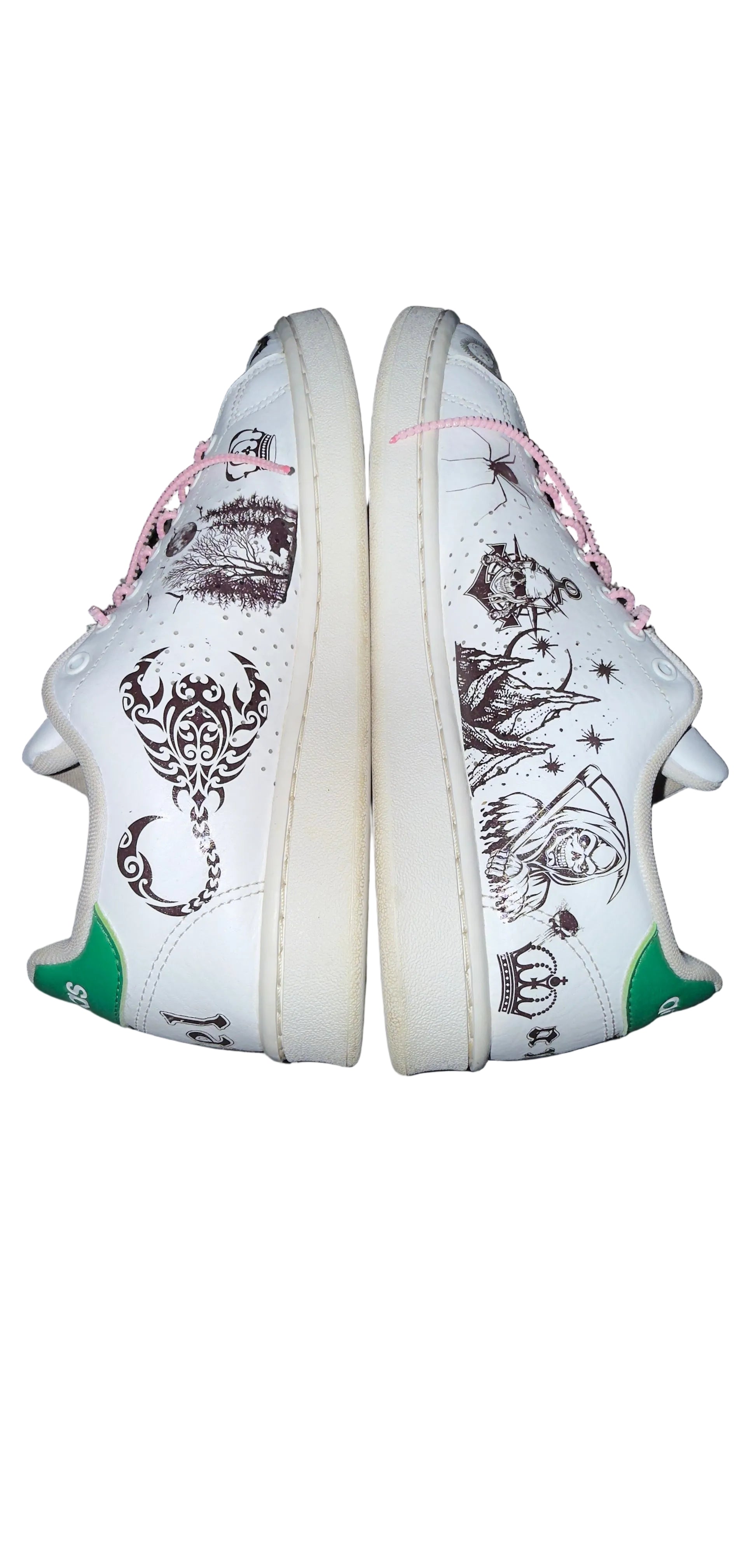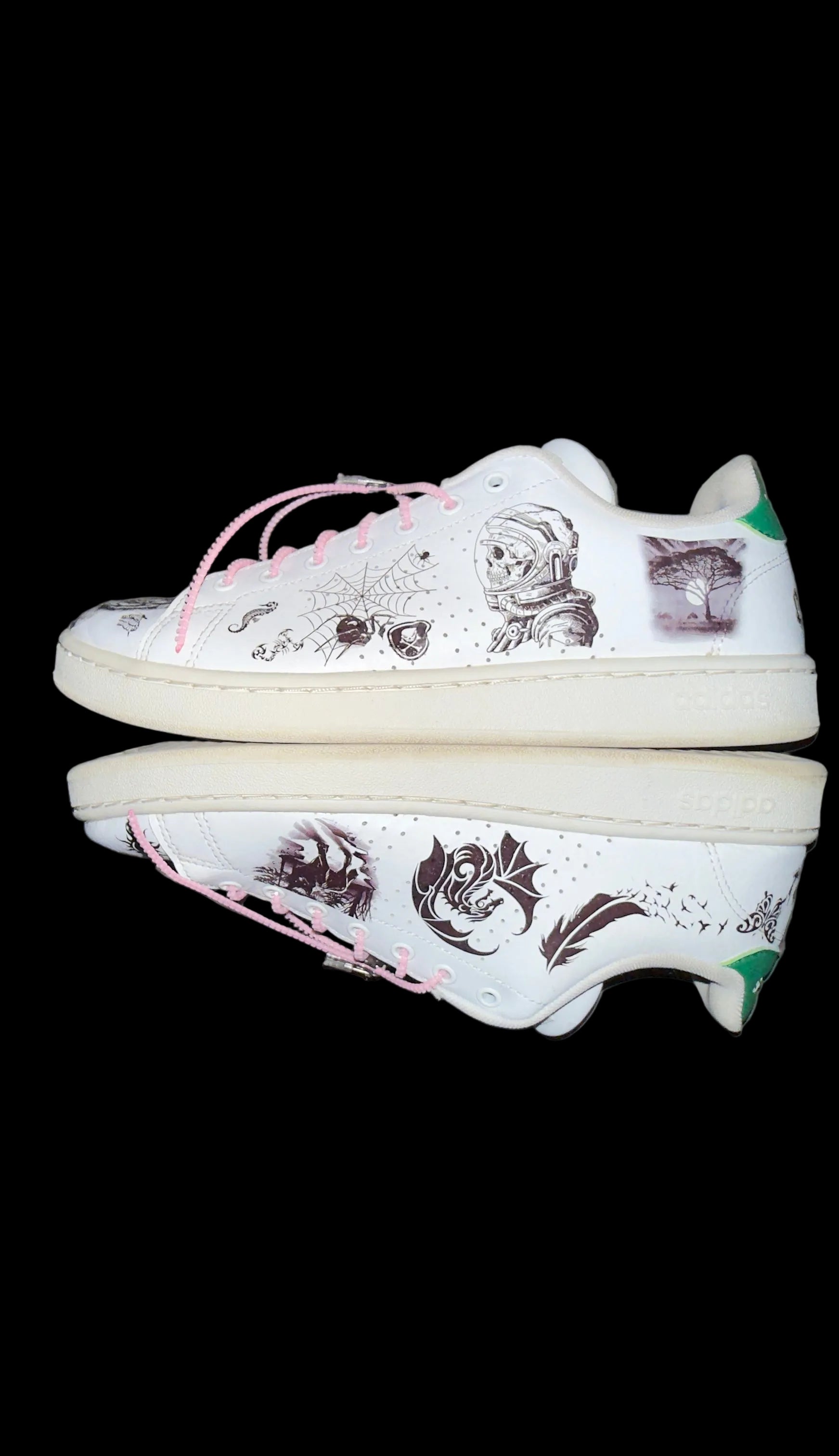 White Custom printed Adidas sneaker with Zipuplaces 1of1 mens size 9.5 made in USA ships worldwide