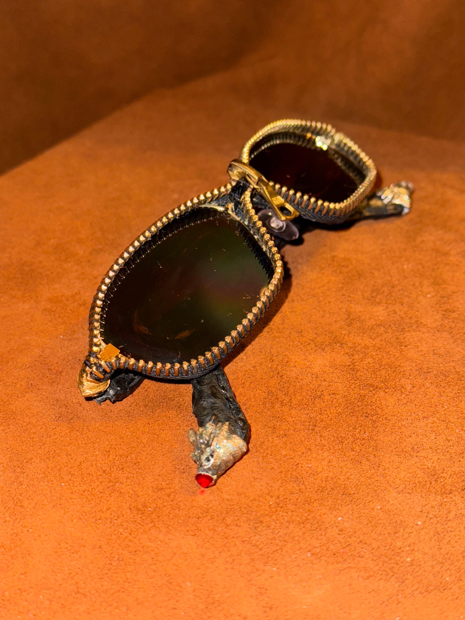 The coolest Eye catching customized fun zipper shades on the planet with python detailing inside and out . Made in NYC ships world wide